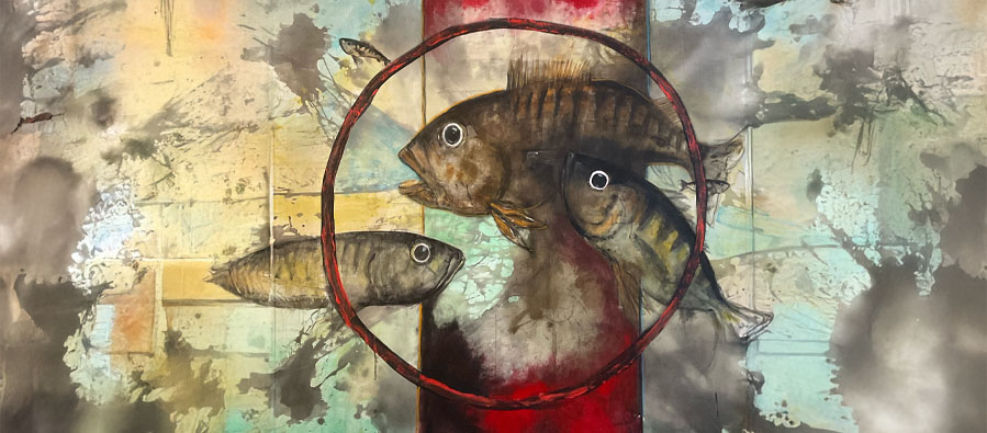 Ali Emre’nin çizgisi, konuşmayanın sesi gibidir. Bu yüzden imza, resimden ayrı düşünülmez: her balık, her göz, her renk o imzanın uzantısıdır; bazen görülür, bazen yalnızca duyulur.