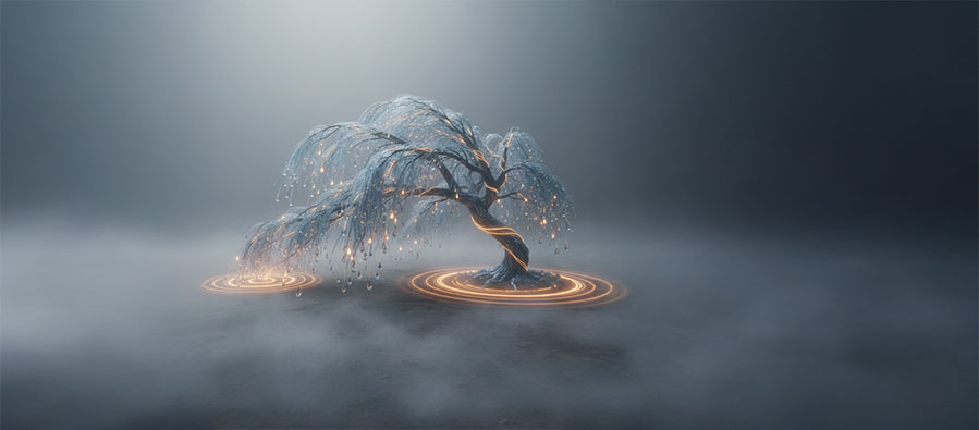 Söğüt, eğilerek kırılmadan yaşamanın ontolojisini bilir; dalları dikey gururu değil yatay esnekliği temsil eder. Dikey merhametin tepeden bakan sert çizgisini, yatay şefkatin yana eğilen iç ısısını en iyi bu ağaç çözümler. Rüzgârı dinler, acının yükünü taşırken nasıl bükülmek gerektiğini öğretir. Şefkatin “yakınlık eğrisi” dediğin o ince etik jesti, Söğüt’ün gövdesinde somutlaşır; merhametin düşey baskısı ise onun kırılma noktası üzerinden okunur.