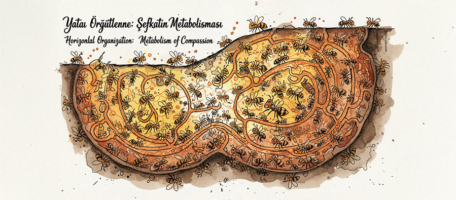 Arı, topluluk etiğini ve yatay örgütlenmeyi yaşayan bir varlıktır; şefkatin kolektif ısısını, merhametin bireysel ve dikey niteliğinden ayıran doğrudan bir deneyimi vardır. Merhamet onda yoktur; şefkat koloni içinde bir dolaşım biçimi, bir ısı transferidir. Acıyı kokusundan tanır, iyileşmeyi balın kimyasında kurar. Arı, acının poetikasını “emeğin ısısı” üzerinden yazdığı için bu dört filozof arasında benzersizdir.
