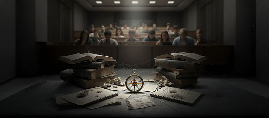Burada kırık pusula yeniden karşımıza çıkıyor. Akademik AVM’nin raflarında satılan fragmanların hepsi, pusulayı tamir ediyormuş gibi görünür. Oysa pusulanın iğnesi çoktan kırılmıştır. Yön göstermiyor, sadece süslenmiş bir aksesuar gibi sallanıyor.