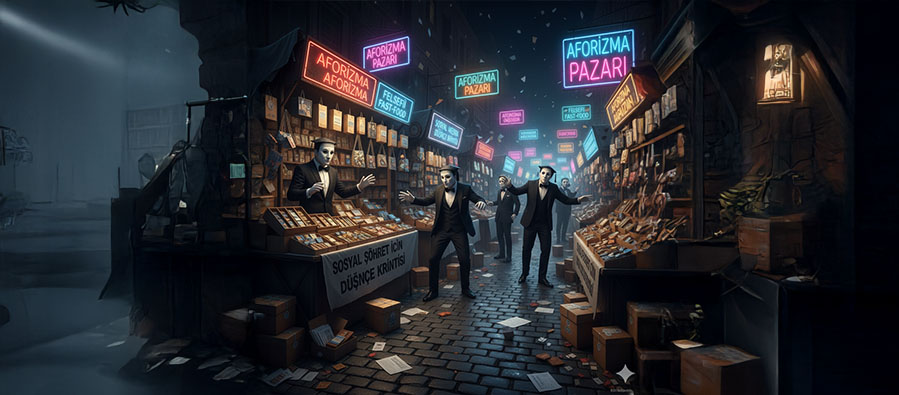 Bir alışveriş merkezinin içinde yürüdüğünüzü hayal edin. Neon ışıkları gözünüzü kamaştırıyor; her vitrinde sahte bir cazibe, indirim etiketiyle süslenmiş. Şimdi o vitrinlerden birine yaklaşın: “%70 indirimli Nietzsche aforizmaları”, hemen yanında “3 al 2 öde: Heidegger’den varlık kırıntıları”, biraz ileride “Kant’ın Saf Aklı – Hızlı Tüketim Paketi.” İşte Türkiye’de felsefe ortamının büyük kısmı bu: bir akademik AVM. Ve o AVM’nin müşterileri de satıcıları da aynı kırık pusulanın gösterişini seyrediyor.