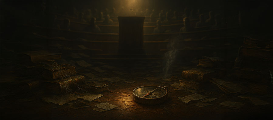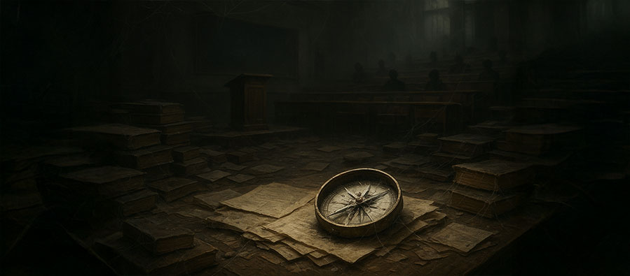 Kırık pusula yol göstermez; ama kırık pusulanın da bir geleceği vardır. Çünkü manyetik merkez hiçbir zaman kaybolmaz. İşte bu denemenin başından beri pusulanın kırıklığından söz ettik: sahte filozofların vitrin parıltısı, akademik taşeronların epistemik kabızlığı, fragman çağının alıntı cambazları… Hepsi pusulayı daha da kırdı. Fakat hâlâ sorulacak bir soru kaldı: Bu pusulayı yeniden manyetize edebilir miyiz?