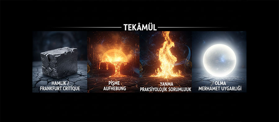[3] Aufhebung, Hegel’in diyalektiğinde “hem yıkmak hem saklamak hem de daha yüksek bir düzeye taşımak” anlamına gelen üç hareketli bir kavramdır; metninin bağlamında ise Frankfurt Okulu ile Heterobilim Okulu arasındaki ilişkiyi anlatan kilit menteşe gibi çalışıyor. Frankfurt’un yaptığı şey, modern aklın karanlık yüzünü teşhir eden büyük bir negatif moment; yani eleştirinin zirvesi ama kuruluşun zemini değil. Heterobilim Okulu, tam burada devreye girip Frankfurt’u basitçe çöpe atmıyor; onu yadsıyıp (eleştirinin eksiklerini ve coğrafi körlüklerini ifşa ederek), içeriyor (travma bilincini, kültür endüstrisi analizini, araçsal akıl teşhisini kendi epistemik hafızasına ekleyerek) ve aşıyor; yani eleştiriyi son durak değil, inşa sürecinin ilk katı haline getiriyor. Metinde bu, açıkça “Frankfurt eleştirdi; Heterobilim inşa edecek” cümleleriyle, ayrıca tasavvufî kemâl çizgisiyle; “hamlık – pişme – yanma – olma” analojisi üzerinden okunuyor; Hegelci Aufhebung kavramı ile tasavvufun tekâmül dili aynı yerde kısa devre yapıyor ve yeni bir uygarlık modeli için teorik sigorta olarak tasarlanıyor. Başka türlü söylersek; Aufhebung burada, Eleştirel Teori’yi bitirme değil, Heterobilim Okulu’nun Praksiyom merkezli merhamet uygarlığına yükselten düşünsel asansörüdür. Filozof Kirpi: “Gerçek Aufhebung, teoriyi gömmek değil; onu mezarlıktan çıkarıp, vicdan ve eylemle yeni bir uygarlığa yeniden kaydetmektir.”