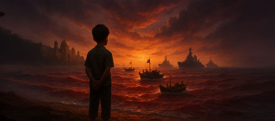 The image of Hanzala turning his back to the sea symbolizes the conscience of Gazan children and the wider Muslim world. While Israel continues its oppression, so-called “Ummah leaders” deliver speeches and secretly trade with the enemy, displaying hypocrisy. Turkey and other Muslim states, under the guise of realpolitik, remain silent in the face of children’s deaths. Through visual memory theory, Hanzala’s gaze reflects both the lost future of children and the moral decay of the Ummah. Against this hypocrisy, the Sumud movement emerged as a civil-society initiative led by conscience-driven individuals, not states. Humanitarian aid delivered via small boats restored hope and provided tangible relief to children. Sumud represents the conscience of the people in contrast to governmental neglect, showing that true Ummah transcends borders, passports, and religion. History will remember not cowardly, self-serving leaders, but the people who courageously took to the sea for humanity. Hanzala’s previously muted gaze now embodies not only despair but also the response of global humanity, signaling the symbolic downfall of deceitful states.
