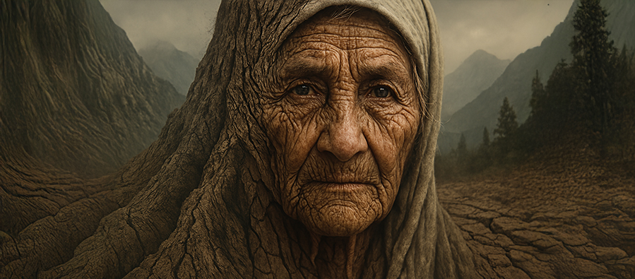 Yüzdeki çizgiler, aynı zamanda birer “doğal yazı”dır. Doğa katledildikçe, yüzlere çizgiler kazınır. Yüz, doğanın bir uzantısı haline gelir. Ağaç kabuğunun çatlaklarıyla, toprağın yarıklarıyla, nehir yataklarının kıvrımlarıyla aynı dili konuşur. Yüz, bir coğrafya olur. Kadının yüzündeki kırışıklık, Kazdağları’ndaki yarıkla aynı şeydir: bir şiddetin izi. Bu yüzden ihtiyar kadının yüzü, yalnızca bireysel bir yaşlılık değil, kolektif bir coğrafyanın travmasıdır.