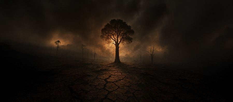 - Fotoğrafçılar, yanmış ormanların ortasında tek başına ayakta duran bir ağacı “yeni yaşamın arketipi” olarak sunar.