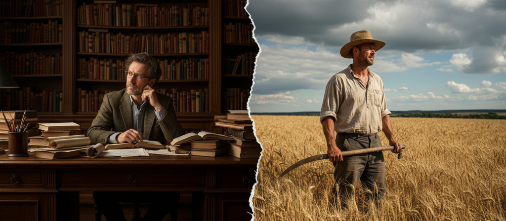 Aydın, bu romanın en sorunlu varlığıdır. Ne zalimdir ne masum; ne bütünüyle iktidardır ne de bütünüyle halk. Aydın, Yol Ayrımı’nda bir ara-özne olarak durur; tam da bu yüzden tehlikelidir. Çünkü ara-özne, her iki tarafa da tercüman olduğunu iddia ederken çoğu zaman her iki tarafın da dilini bozar. Kemal Tahir, aydını bir kişilik olarak değil, bir işlev olarak çözümler. Bu işlev, öğretmekle başlar; temsil etmekle devam eder; vasiliğe varır. Felaket, tam bu ilerleme çizgisinde ortaya çıkar.