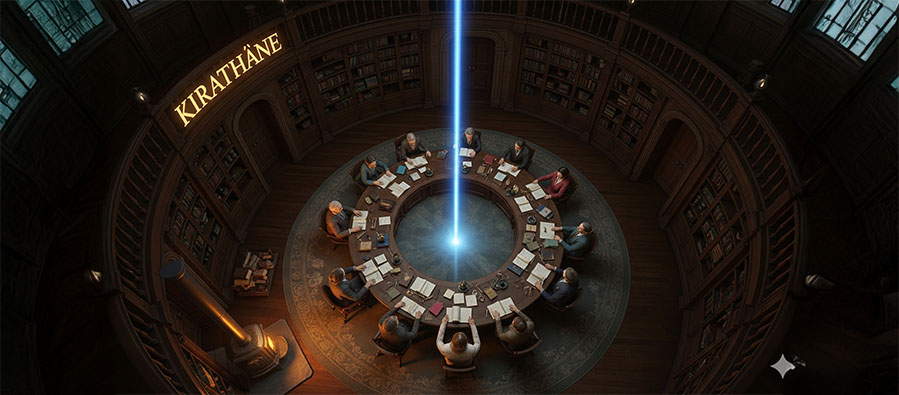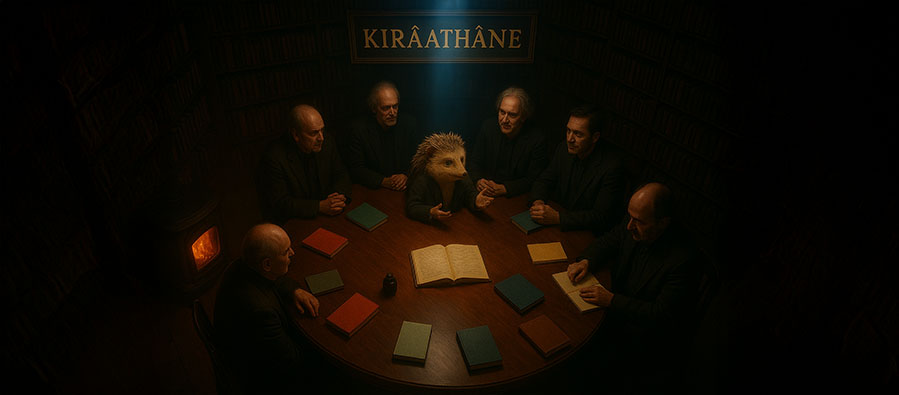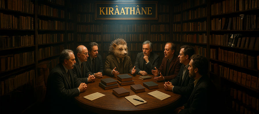 Bu metin, kıraathaneyi yalnızca bir mekân değil, hafızanın çok sesli laboratuvarı olarak kuruyor. Moderatör Filozof Kirpi, sözü diken gibi keskin, ritmi bir orkestra şefi gibi yönetiyor. Yuvarlak masada Arthur Schopenhauer, irade ve tasarımın karanlığını dile getirirken; Martin Heidegger, varlığın unutuluşunu derin bakışlarla sorguluyor. Yanında Friedrich Hölderlin, şiirle felsefeyi aynı nefeste birleştirip masayı lirik bir coşkuya boğuyor. Sezai Karakoç, diriliş ruhunu yükseltirken; Attilâ İlhan, poetik öfkesiyle Batı’ya meydan okuyor. Kemal Tahir, Anadolu’nun tarihini ve toplumsal damarlarını romanın kalın diliyle açıyor; Baykan Sezer, sosyolojiyi bu toprakların terazisine çekiyor. İsmet Özel, şiir ve siyaseti keskin bir kılıç gibi birleştiriyor; İdris Küçükömer, düzenin yabancılaşmasını korkusuzca masaya koyuyor. Ortaya çıkan şey: estetikle siyasetin, teolojiyle sosyolojinin, etikle epistemolojinin heteropoetik bir dramaturji içinde yeniden akort edilmesi.