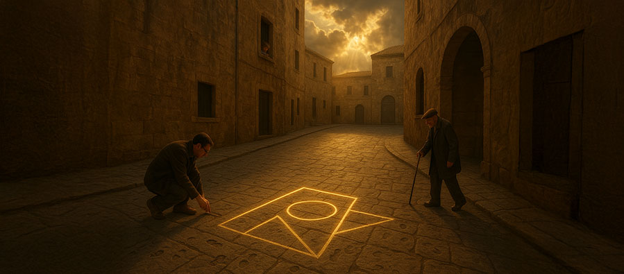Geometri, yalnızca dışsal dünyayı düzenlemekle kalmaz; özneyi de kurar. Bir çizgi çekmek, “ben” ile “öteki” arasına sınır koymaktır. Bir daire çizmek, topluluğu içine almak ve dışarıyı dışarıda bırakmaktır. Bu nedenle geometri, öznenin kendisini ve başkalarını kavrayışını biçimlendirir. Fenomenolojik düzeyde geometri, öznenin varoluşunun mekânsal kipidir. Çizgi, öznenin zamandaki sürekliliğini; daire, döngüselliğini; üçgen, yönelimini belirler. Bu formlar, insanın kendi varlığını dünyada nasıl kurduğunu gösterir.