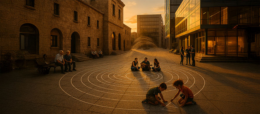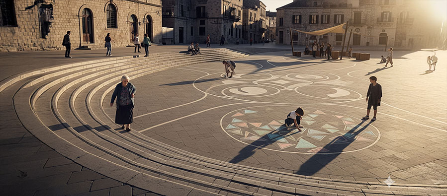 Gelin zamana iki nota yazalım: döngüsel ve doğrusal. Döngüsel zaman—mevsim, hasat, gündönümü, tekrar eden masa; doğrusal zaman—yaşam evreleri, proje takvimleri, ilerleme vaadi. Geometri bu iki melodiyi bir arada tutar: tarlanın ızgarası döngünün altyapısını kurarken, ev planı doğumdan ölüme, bekâr odasından haremliğe, atölyeden salona kadar kimliklerin değişen sahnelerini taşır. Peki döngünün içinde kimler görünür, kimler gölgede kalır; çizgi kimleri içeri alır, kimleri dışarıda bırakır; ızgara kimin planıdır, meydan kimin sesi? Gündeliğin pratikselliği burada politik bir soruya döner. Matematiksel düşünme, ölçü ve tutarlılık talep eder; felsefi düşünme, adalet ve anlam—ikisinin ittifakı, yalnızca iyi bir plan değil, iyi bir hayat üretebilir. Manifesto: “Ölçü adaletle buluşmadıkça plan plan değildir; çizgi merhametle yumuşamadıkça sınır sınır değildir; ızgara dayanışmayla beslenmedikçe şehir şehir değildir.”