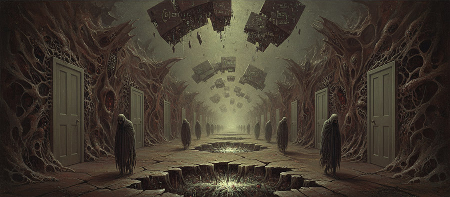 Mekânın bu şekilde çalışması, öznenin dağılmış yapısıyla doğrudan bağlantılıdır. Dağılmış bir benlik, sabit bir mekânda barınamaz. Bu yüzden Yazgıç’ın karakterleri sürekli bir yerden bir yere gider; ama hiçbir yere varmaz. Varış yoktur; sadece geçiş vardır. Eşik imgesi bu noktada yeniden ortaya çıkar. Kapılar, merdivenler, pencereler… Bunlar geçiş vaat eder; ama çoğu zaman geçiş gerçekleşmez. İnsan kapının önünde durur. İçeri girmek de dışarı çıkmak da risklidir. Mekân, bu riskin fiziksel karşılığıdır.