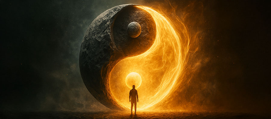 İnsan işte bu iki yüzün kesiştiği yerde kendine bir yüz çizer; ne tamamen karanlık ne tamamen ışık. Bir ara sıcaklık; kadim Tao’nun söylediği o gizemli ritim; Heterobilim Okulu’nun arakesit metafiziğinde yankılanan o sezgisel eşik. Evren bu eşikte nefes alır; insan bu eşikte anlam bulur. Ve hakîkat, tam da bu eşikte doğar.
