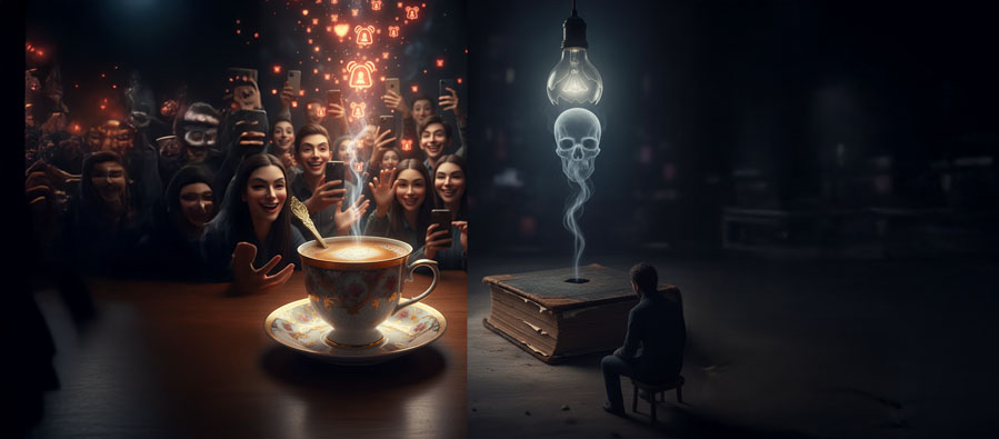 Kahvenin kırk yıllık hatırını kutsarken yazının kırk saniyelik “rahatsızlığı”na tahammül edemeyen çarpık terazinin önünde duruyoruz: tat hafızasıyla şişmiş, düşünce hafızası atrofik[1] bir kültürün aynası bu. Bedensel emek görünürdür; köpüğü parıldar, buharı fotojeniktir, dopamini hızlı verir ve bardağın dibinde telve gibi hemen kalıntı bırakır. Zihinsel emek görünmez; kokusuzdur, sabır ister, sessizlik talep eder—yani çağın üç yasak meyvesi. Kapıda ikram edilen kahveyi dost, ekranda beliren metni polis zanneden zihnin “bildirim refleksi bozukluğu” vardır: uzun cümle görünce sempatik sistem tetiklenir, “kaç/savaş” kipine geçilir, metne bomba muamelesi yapılır, hatta hükümet yetkilileri göreve çağrılır; çünkü zihnin içinde yıllardır biriken barutun kıvılcımını metinden beklemek, suçu aynaya atmanın kadim hilesidir.