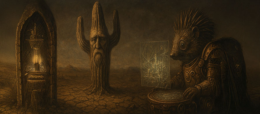 Fablobilim’den Filozof Sansar, karanlık tünellerde kıvılcımları koklayan o sezgisel sinir avcısıyla toplumsal epilepsinin nöbet kimyasını yazar; devrelerin neden patladığını, susturulmuş eleştirinin hangi çatlaklardan sızarak patlayıcı bir birikime dönüştüğünü o çözer. Florabilim’den Filozof Kaktüs, çölün sessiz vahyini taşıyan dikenli bilgeliğiyle eleştirinin yokluğunu kurak bir toplum metabolizması gibi yorumlar; susuz bırakılmış hakîkatin nasıl çatladığını, kurumların nasıl kılcal damarlarından kuruduğunu anlatır. Filozof Kirpi, bu iki karanlık sezginin üstüne kendi polemikçi zekâsıyla asıl teşhisi koyar; eleştiri kaybolduğunda toplumun sinaptik haritasının nasıl çöktüğünü, nöbet defterine kazınan yaraların nasıl bir Armageddon’a dönüştüğünü dillendirir. İmdat Demir ise tüm bu filozofların sesini birleştirerek metnin stratejik bilincini kurar; nörobilimle sosyolojiyi, etik metabolizmayla politik anatomiyi tek kadrajda toplayıp “uyarı sistemi çökmüş bir toplumun karanlık haritası”nı çizer.