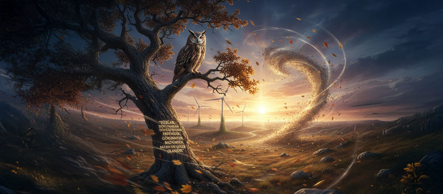 Filozof Baykuş der ki: “Rüzgâr, dokunmadan dönüştürmenin erdemidir; görünmeyen, bazen en güçlü olandır.”